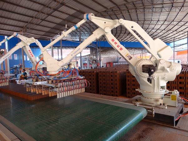 工業(yè)機器人自動切碼翻系統(tǒng),可根據(jù)不同的碼放形式及磚型靈活設(shè)計夾具,該系統(tǒng)基于AC伺服的電氣驅(qū)動,工作過程由PLC自動控制。工業(yè)機器人自動切碼翻系統(tǒng)打造磚瓦人工智能化生產(chǎn)。是磚機制造商發(fā)展的必然趨勢。在新形式下,渤海機械將機器人碼坯集成系統(tǒng)和硬塑擠出成型技術(shù)運用于磚瓦行業(yè),實現(xiàn)智能化生產(chǎn),為您節(jié)省大量的人力資源,提高生產(chǎn)產(chǎn)量和經(jīng)濟效益。