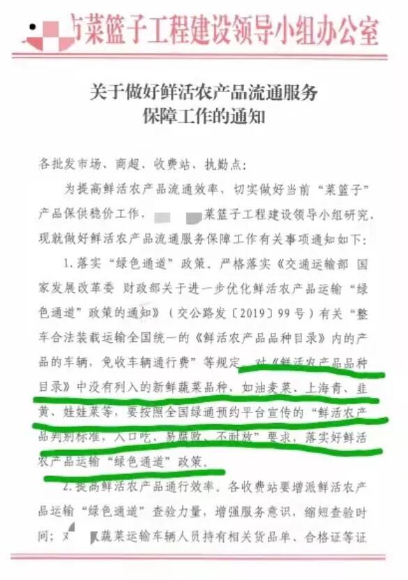 據(jù)全國(guó)部分主流官方媒體報(bào)道:11月初,中部某地方“菜籃子”工程建設(shè)領(lǐng)導(dǎo)小組辦公室發(fā)出通知,外地車輛運(yùn)輸蔬菜進(jìn)入該城市,非《鮮活農(nóng)產(chǎn)品品種目錄》內(nèi)的蔬菜品種,應(yīng)按照國(guó)家關(guān)于鮮活農(nóng)產(chǎn)品判別標(biāo)準(zhǔn),享受鮮活農(nóng)產(chǎn)品運(yùn)輸“綠色通道”政策,免收車輛通行費(fèi)。